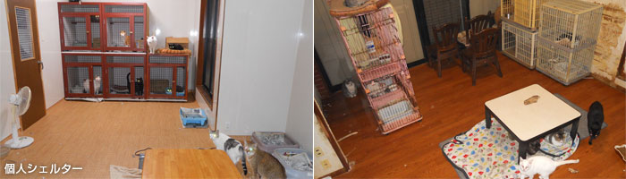 貰い手のつかなかった猫たちは、個人シェルターへ・・・最大規模の個人シェルターは、いくつかの部屋に分かれ、合計70匹以上が暮らす。