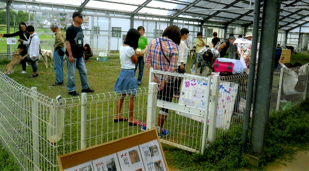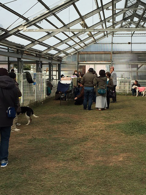 環境の良い、温室のような壁のあるドックランでの譲渡会で