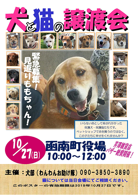 時ポスターやチラシを制作し、里親さんを募集しています。